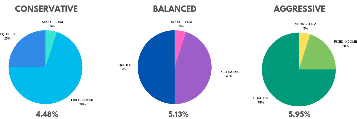 Taking a look at three model portfolios from the “Projection Assumptions Guidelines” published by the Financial Planning Standards Council every year, they estimate that one can expect to earn approximately 4.5% on a conservative portfolio, 5.1% on a balanced and nearly 6% on an aggressive portfolio. These are the assumptions that as Certified Financial Planner® professionals we adhere to for planning and projection purposes.